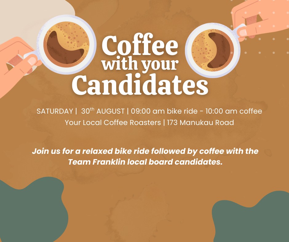 Aug 30 9:00 am - 11:30 am Ride, Coffee & Candidates Your Local Coffee Roasters Brew Bar and Roastery 173 Manukau Road, Pukekohe, Auckland Event Details Get Directions