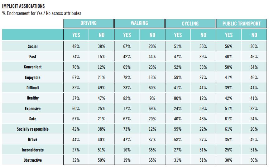 Lastly, here’s a table showing the associations people made with different modes of transport…