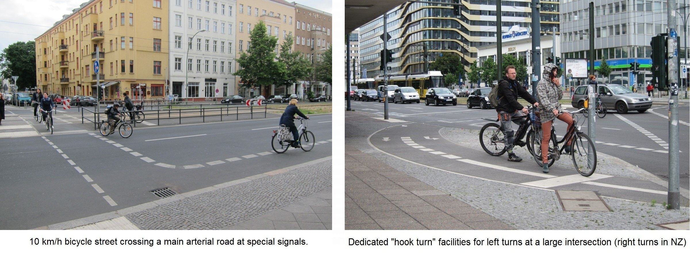 I did see a few instances of clever cycle infrastructure, for example a bike street (basically a traffic-calmed side street) crossing an arterial road with a dedicated signal crossing, or a nice way of incorporating “hook turn” facilities so cyclists don’t have to wait in the middle of the road.