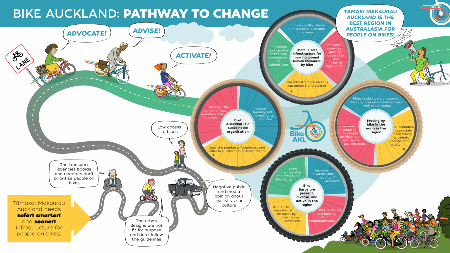 The Pathway of Change image reflects what Bike Auckland aims for the next three years.